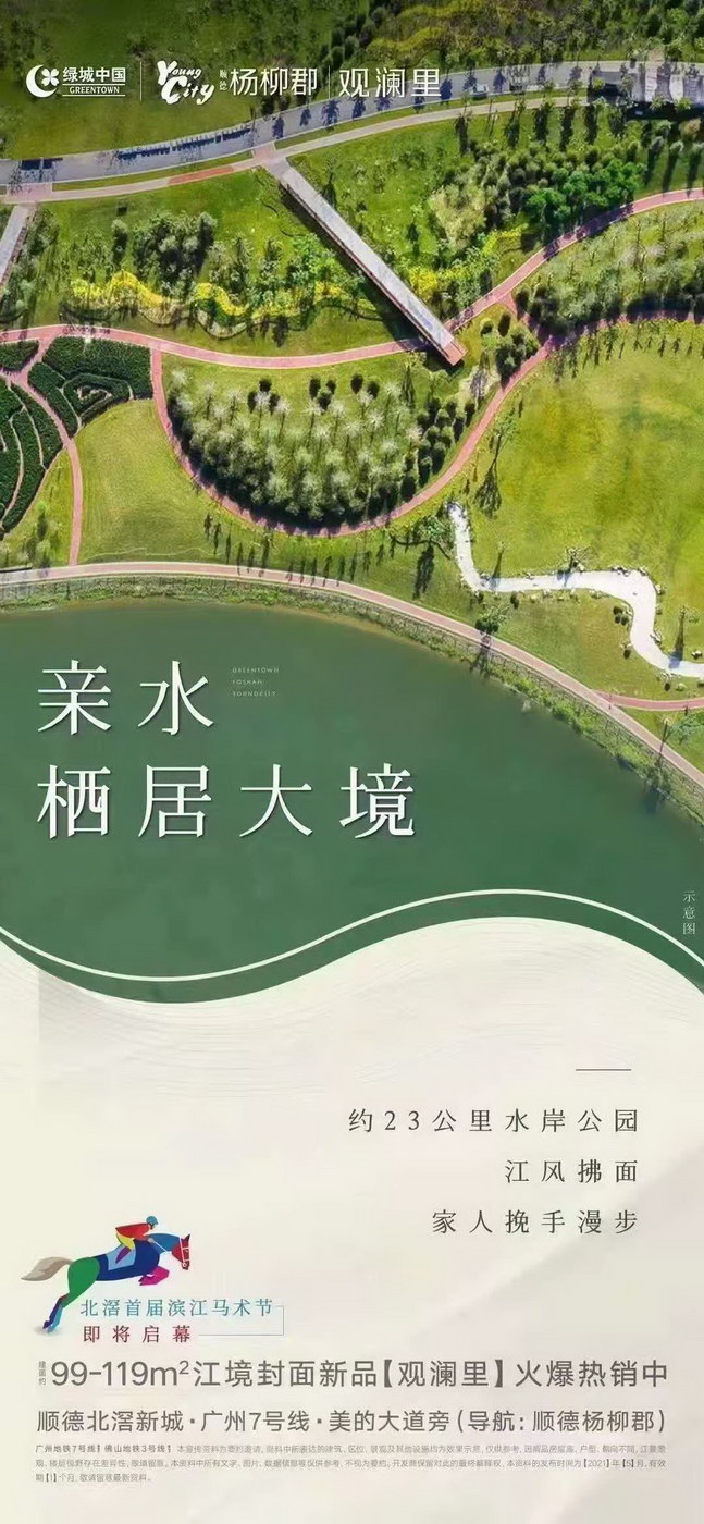 备注:顺德北滘绿城顺德杨柳郡怎么样 约23km滨江公园,与家人挽手漫步,新贵级江景,约99-119㎡双地铁江景房新品加推 地铁江境新品【观澜里】热销中