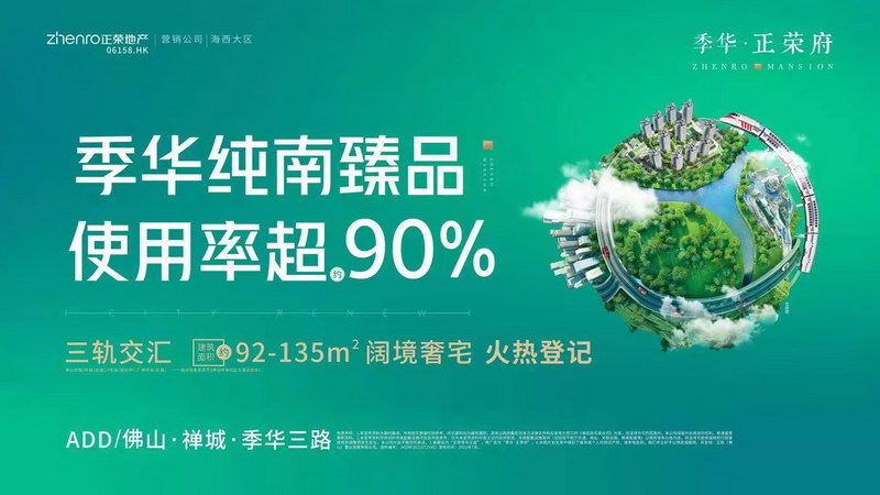佛山季华正荣府怎么样 在售约92-135㎡南向阔境奢宅,户户朝南,使用率超9成,季华芯,三地铁,纯南向美宅!