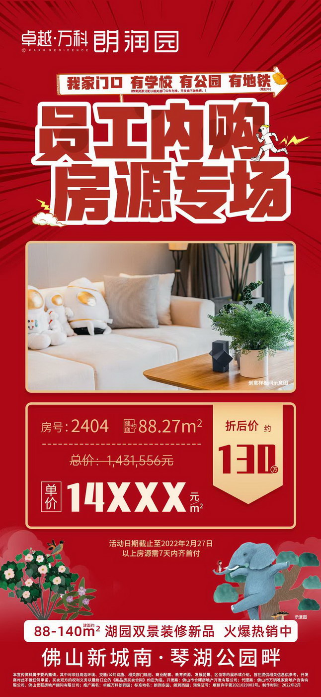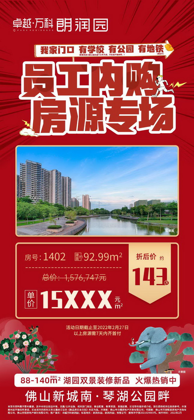 佛山卓越万科朗润园怎么样 现推出准现房 单价 88-140方单位,员工内购房源捡漏 浏览量:4834次!